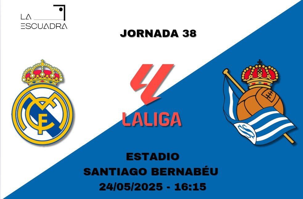 Real Madrid CF – Real Sociedad disputan el último partido correspondiente a la jornada 38 Este sábado 24 de mayo a partir de las 16:15 horas...