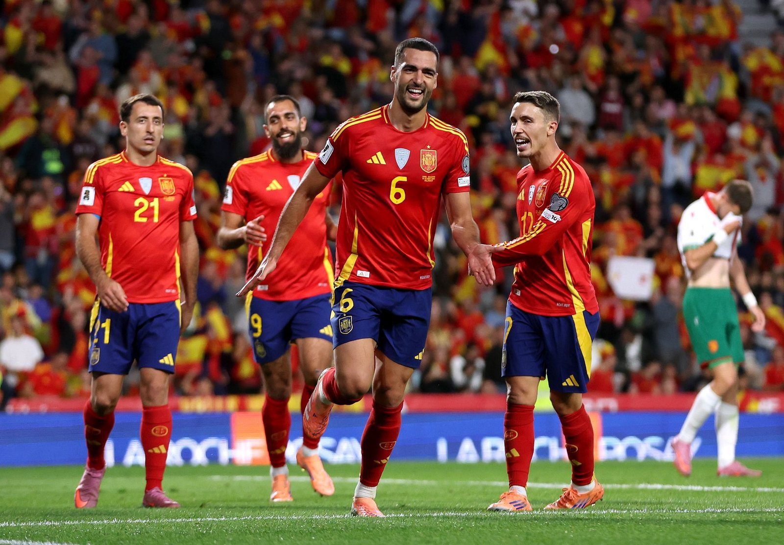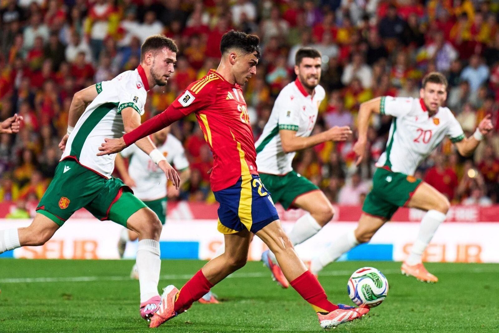 Arrancaría en encuentro con la selección española teniendo el cuchillo entre los dientes y asediando a la defensa búlgara, eventualmente encontrando espacios en una conjunto completamente desarmada.