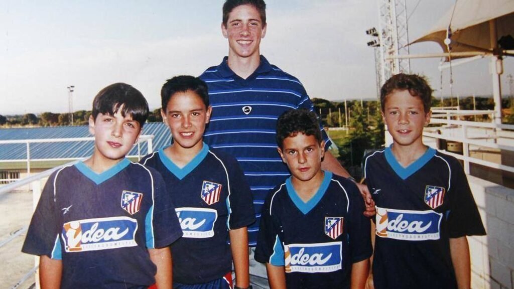 Solo hay que ver esta imagen histórica. En ella podemos ver a probablemente los dos jugadores más importantes en la historia del club. A un jovencísimo Fernando Torres que apenas debutaba como profesional y a un niño, de pelo rizado, que ya llevaba en su corazón el escudo del Atlético de Madrid.