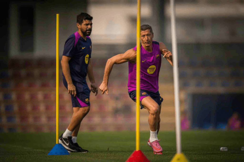 El polaco de 37 años lleva 7 goles en liga y 2 en Champions. Rashford, Ferran e incluso Toni Fernández le han sustituido en punta. Hoy ya ha entrenado con el grupo: los que jugaron ayer en el Clásico han hecho ejercicios de recuperación y el resto más intensos. Mañana es día libre, pero a partir del miércoles hasta el encuentro ante el Elche tienen programadas sus respectivas sesiones de entrenamiento que determinarán la progresión de la lesión de Lewan, aunque pinta bien y progresa de manera satisfactoria.
