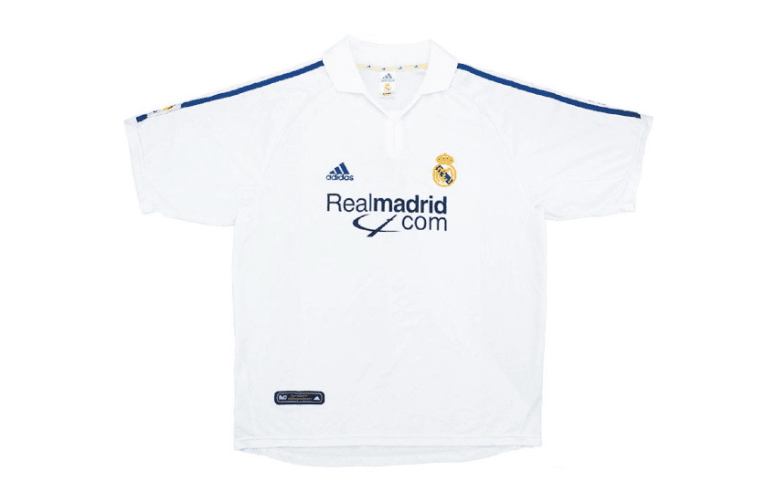 La temporada 2001-2002 comenzó con una equipación que, en su momento, despertó debate: camiseta blanca con detalles negros y pantalón negro. Una estética elegante, sobria, imponente. Bajo las órdenes de Vicente del Bosque, el Real Madrid ganó la Champions League en Glasgow ante el Bayer Leverkusen gracias a un gol de leyenda: la volea de Zidane que aún retumba en el tiempo.