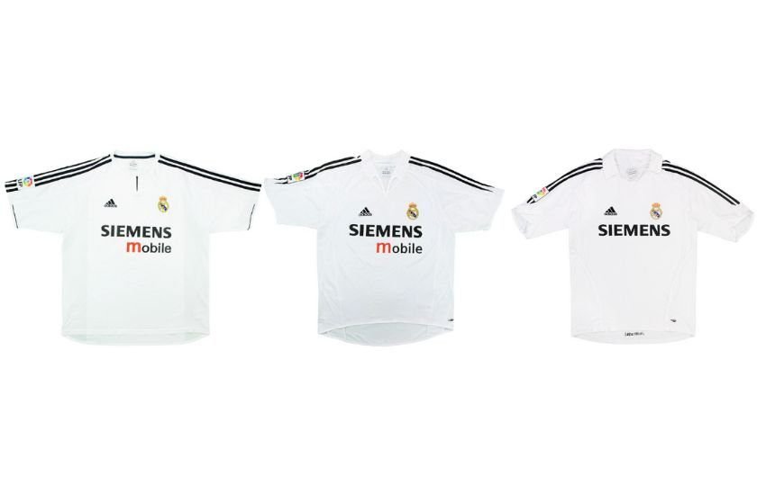Dos temporadas después, el Madrid volvió a las andadas con una equipación muy similar: camiseta blanca con ribetes negros y pantalón blanco. La campaña 2003-2004 arrancó como tantas otras del Madrid galáctico: ilusión, fichajes mediáticos y goles. Pero terminó de forma abrupta. El club no ganó ni un solo título, tras ser eliminado en Copa por el Zaragoza en la final, en Champions por el Mónaco de Morientes, y ceder la Liga al Valencia.