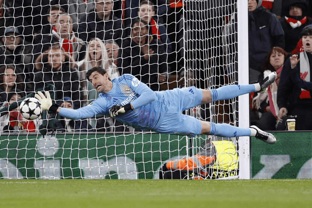 Podemos también pensar en el fatídico día de Anfield, que dejó en la cuerda floja la clasificación del Real Madrid en la Champions League. Courtois recibió dos goles, y aún así, fue uno de los mejores del equipo, deteniendo las cabalgadas del equipo de Arne Slot.