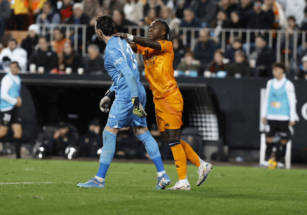 Los datos no engañan a nadie, y el Real Madrid en sus tres últimas visitas a Mestalla, ha recibido tres tarjetas rojas. Hace dos campañas, fue el famoso acto racista en el estadio del Valencia por lo que fue expulsado Vinicius, la temporada pasada, el momento de confusión de Gil Manzano y el gol fuera de tiempo de Bellingham, que le costó la expulsión.
