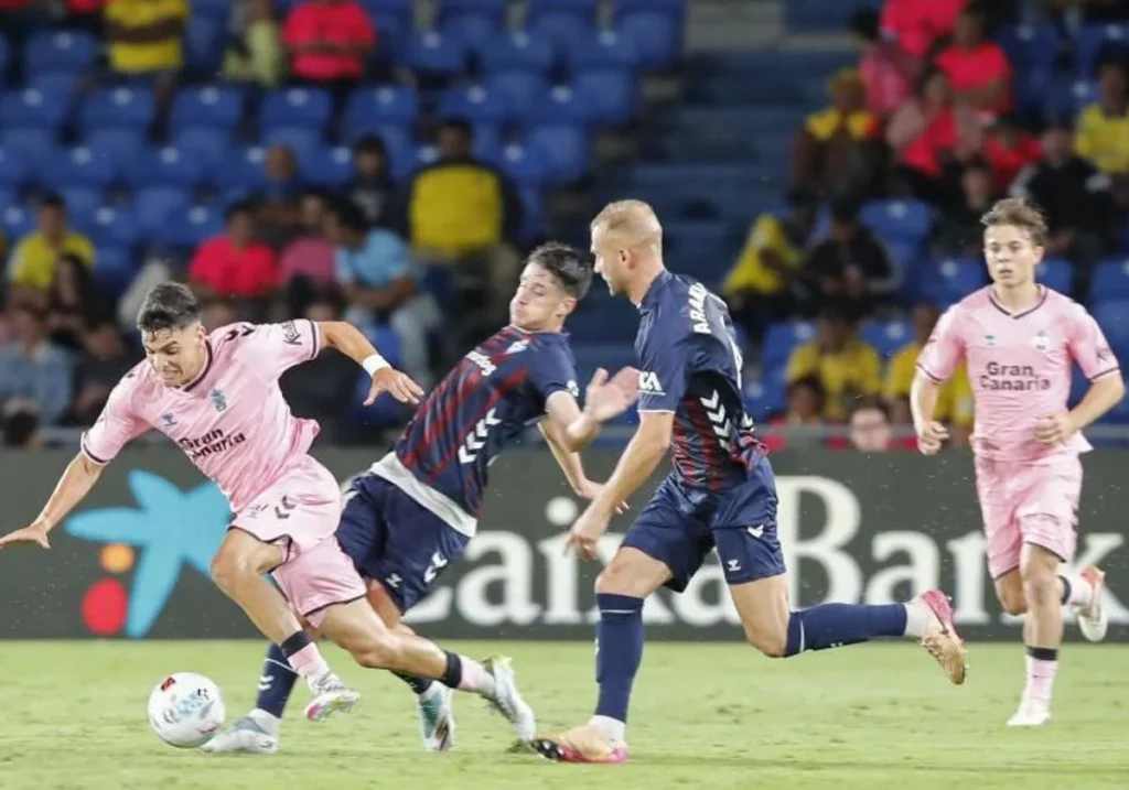 Arrancó el partido en el Estadio de Gran Canaria, donde el equipo local quiso realizar un bonito gesto, portando una equipación de color rosa para conmemorar el Día Mundial del Cáncer de Mama. Un partido que dio comienzo algo trabado, pero que hizo caer la balanza del lado del Éibar con un centro envenenado de Guruzeta, que complicó el despeje del portero amarillo.